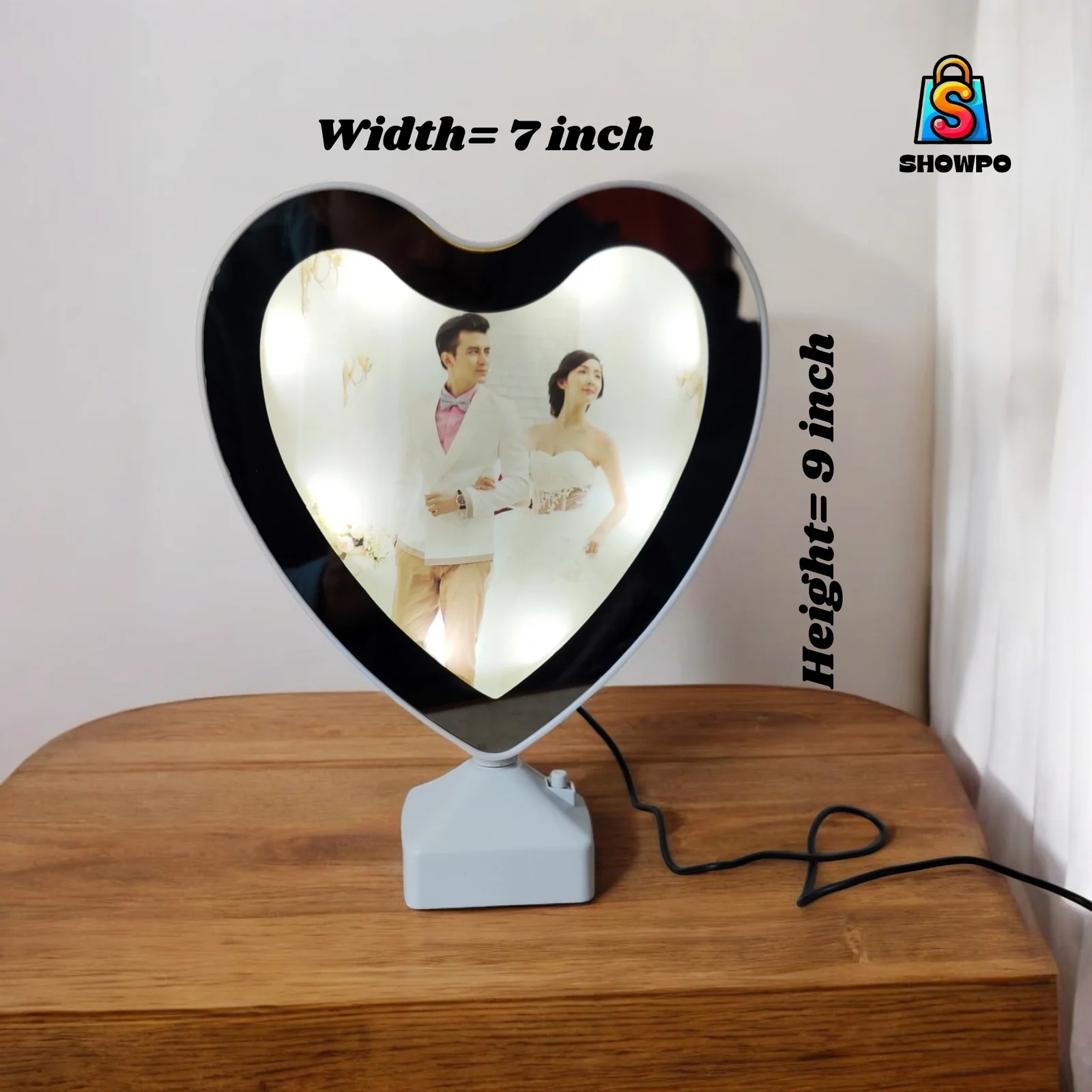 আমাদের এই ম্যাজিক মিররটি নরমাল অবস্থায় আয়না হিসেবে কাজ করে, কিন্তু সুইচ অন করলেই ভেতরে আপনার প্রিয় ছবি ভেসে উঠবে।এই বড় লাভ শেইপ ম্যাজিক মিরর (Magic Mirror) টি আপনার প্রিয়জনকে উপহার দেওয়ার জন্য বা ঘরের সৌন্দর্য বর্ধনে একটি চমৎকার শোপিস।